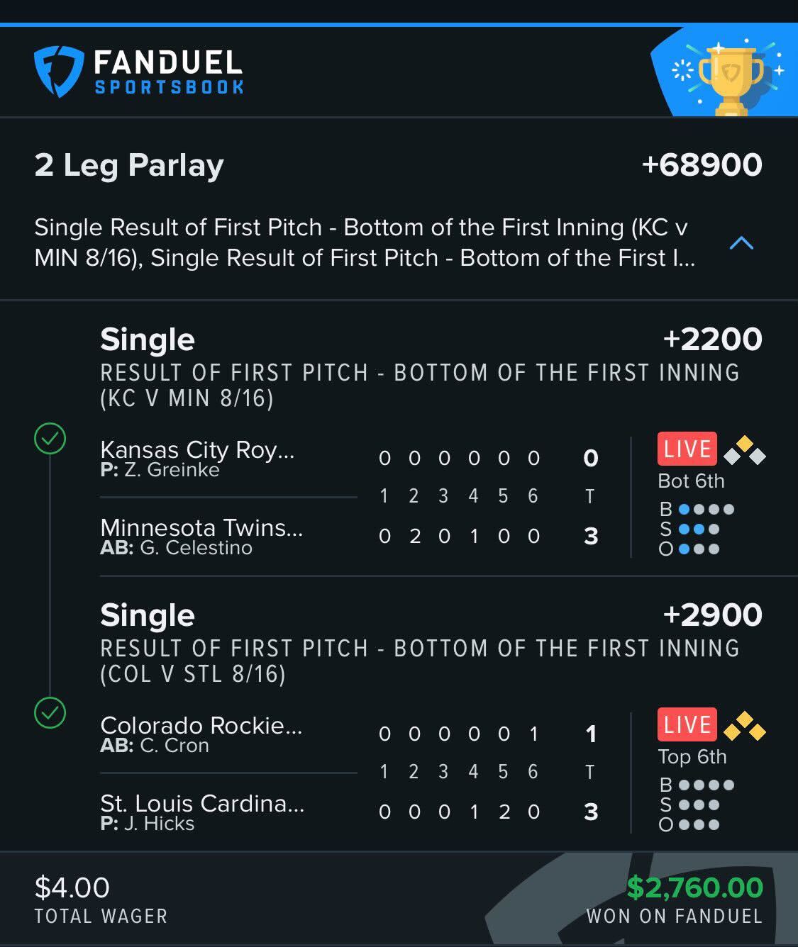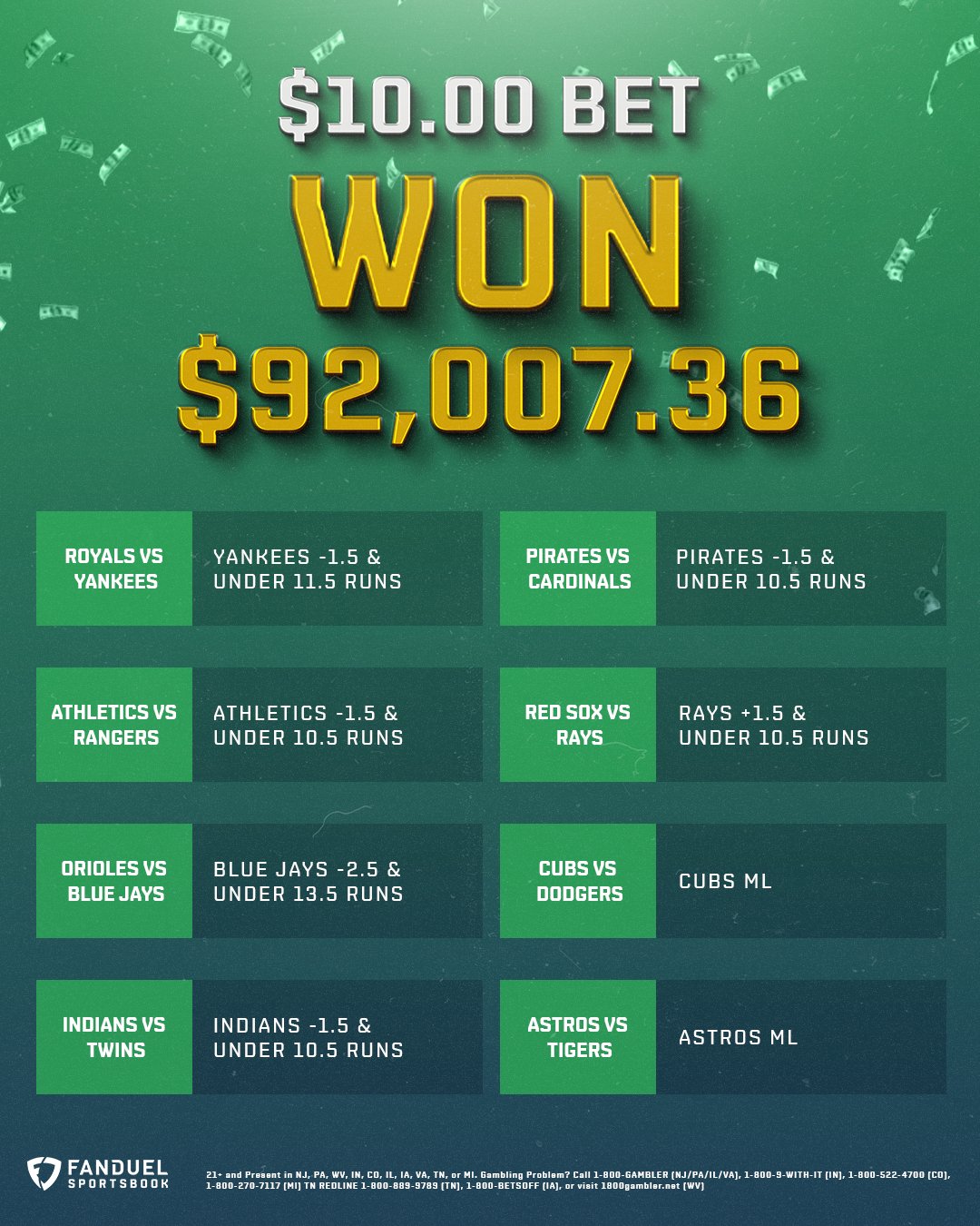 Fanduel Sportsbook On Twitter 10 92 007 36 One Lucky Customer Hit This Mlb Parlay Of A Lifetime Last Night Https T Co J9qwlzm8ao Twitter